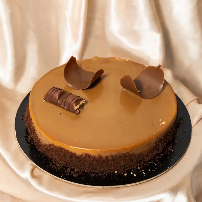 Pandispanjë kakao, krem pana, krem me bazë semifredo, biskota me çokokrem, pasta karamel